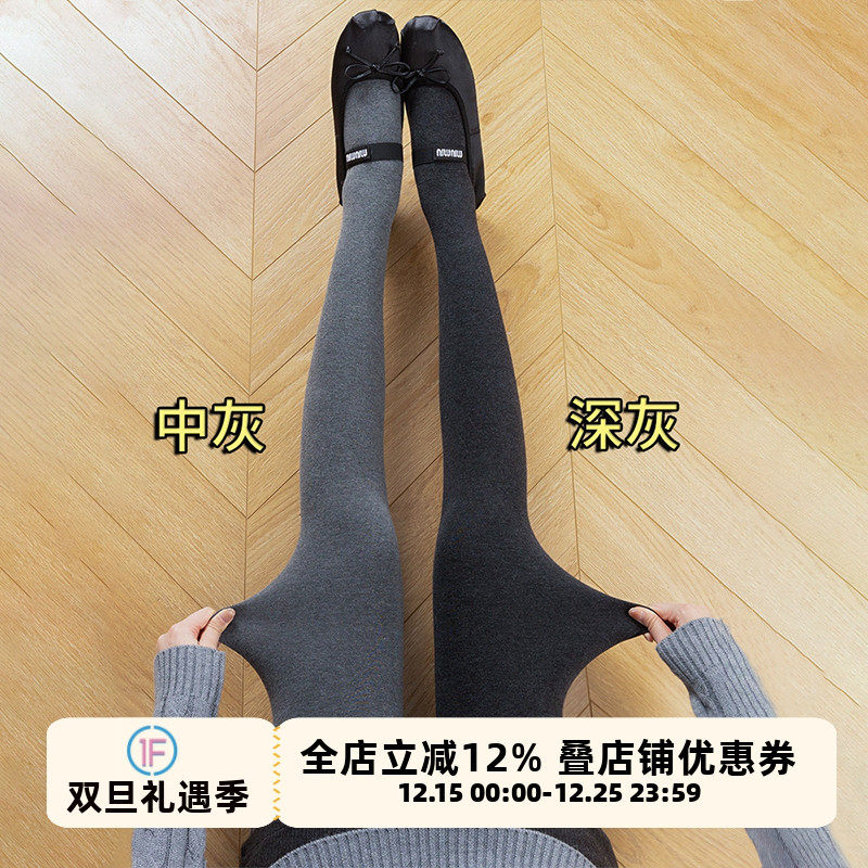 菇娘家灰色打底裤连裤袜女秋冬加绒外穿大码深灰色瘦腿压力薄裤袜
