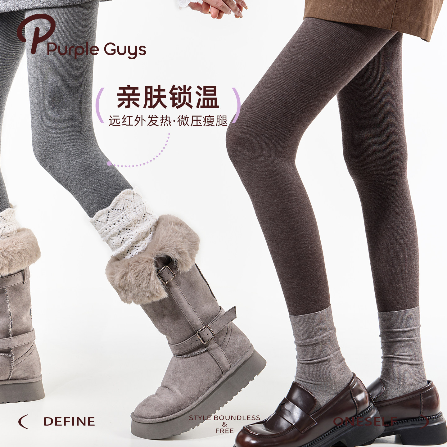 purpleguys灰色连裤袜女秋冬加绒加厚黑外穿保暖微压显瘦打底裤袜