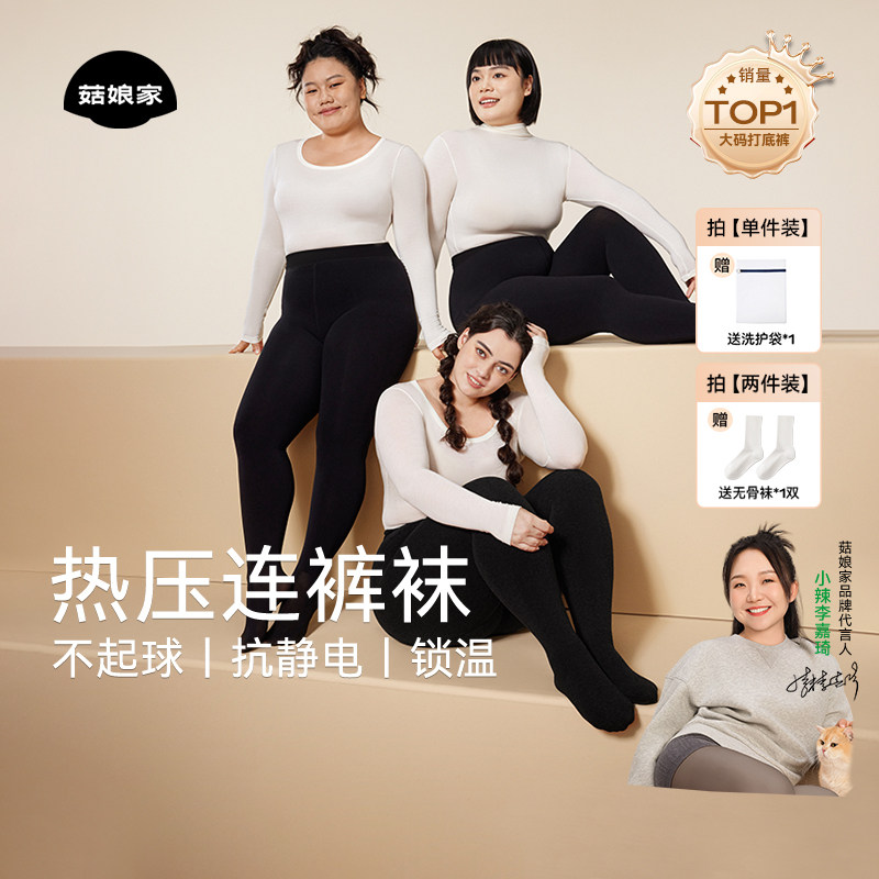 菇娘家热压连裤袜高支棉羊毛打底裤女灰色大码秋冬黑色保暖瘦腿袜