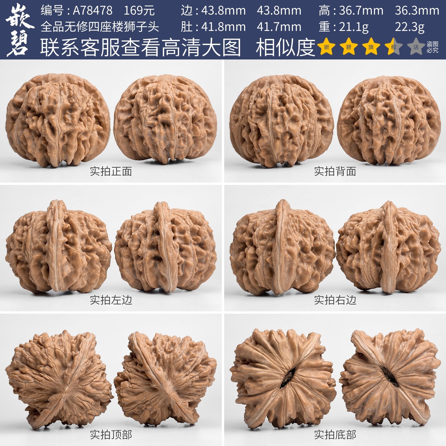 文玩核桃四座楼核桃一物一图A78478全品无修狮子头矮桩大尺寸44mm