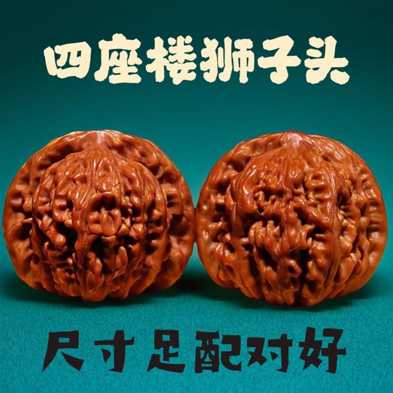 文玩核桃四座楼狮子头手把件皮质好上色快手把玩狮子头麻核桃红皮