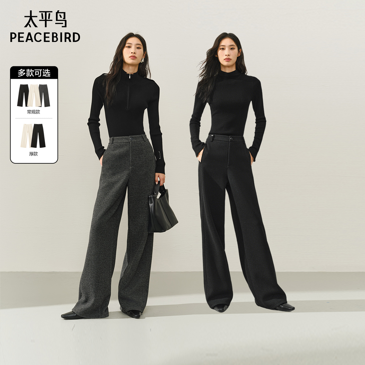 加绒上新 太平鸟广角裤高腰阔腿牛仔裤2025秋冬新款大直筒牛仔裤