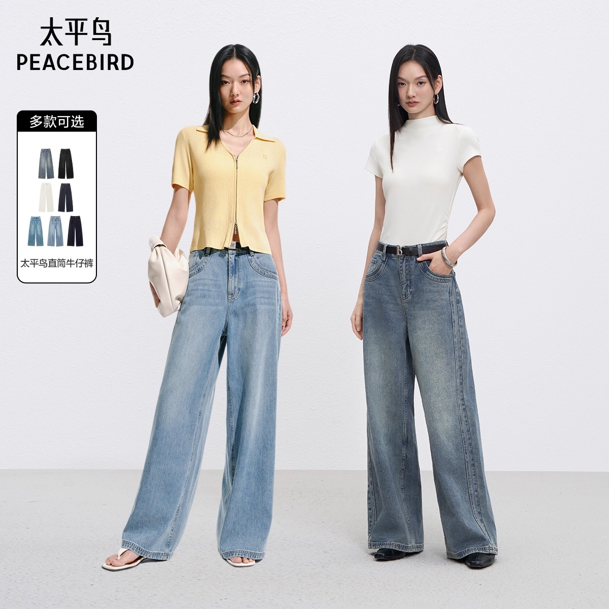太平鸟2025春季高腰宽松显瘦翻脚口宽松阔腿直筒牛仔裤A1HAE4354