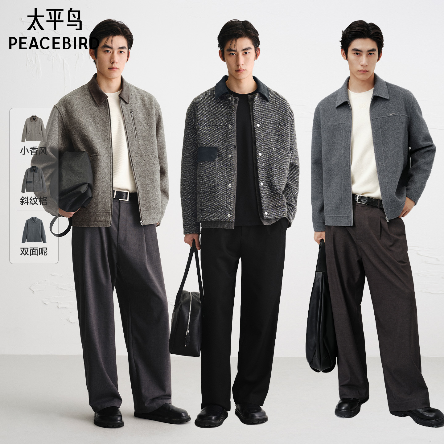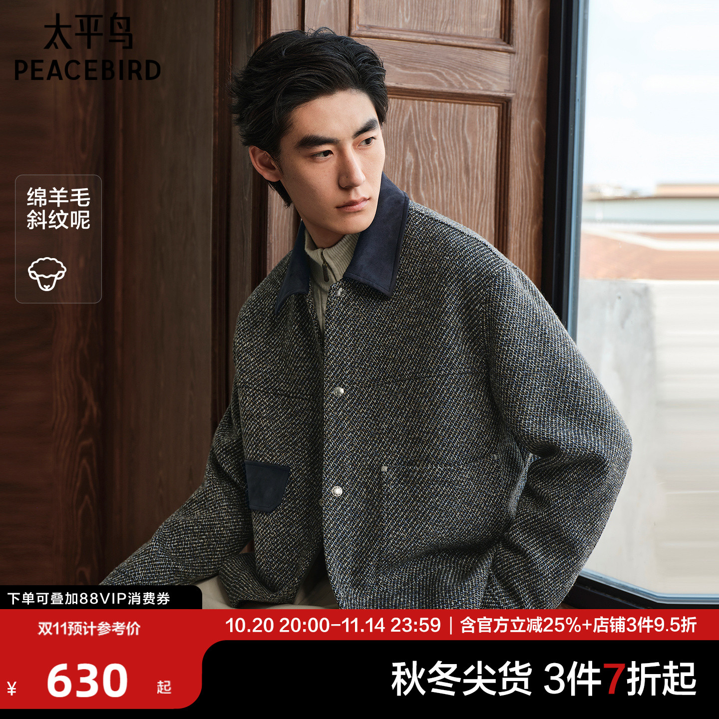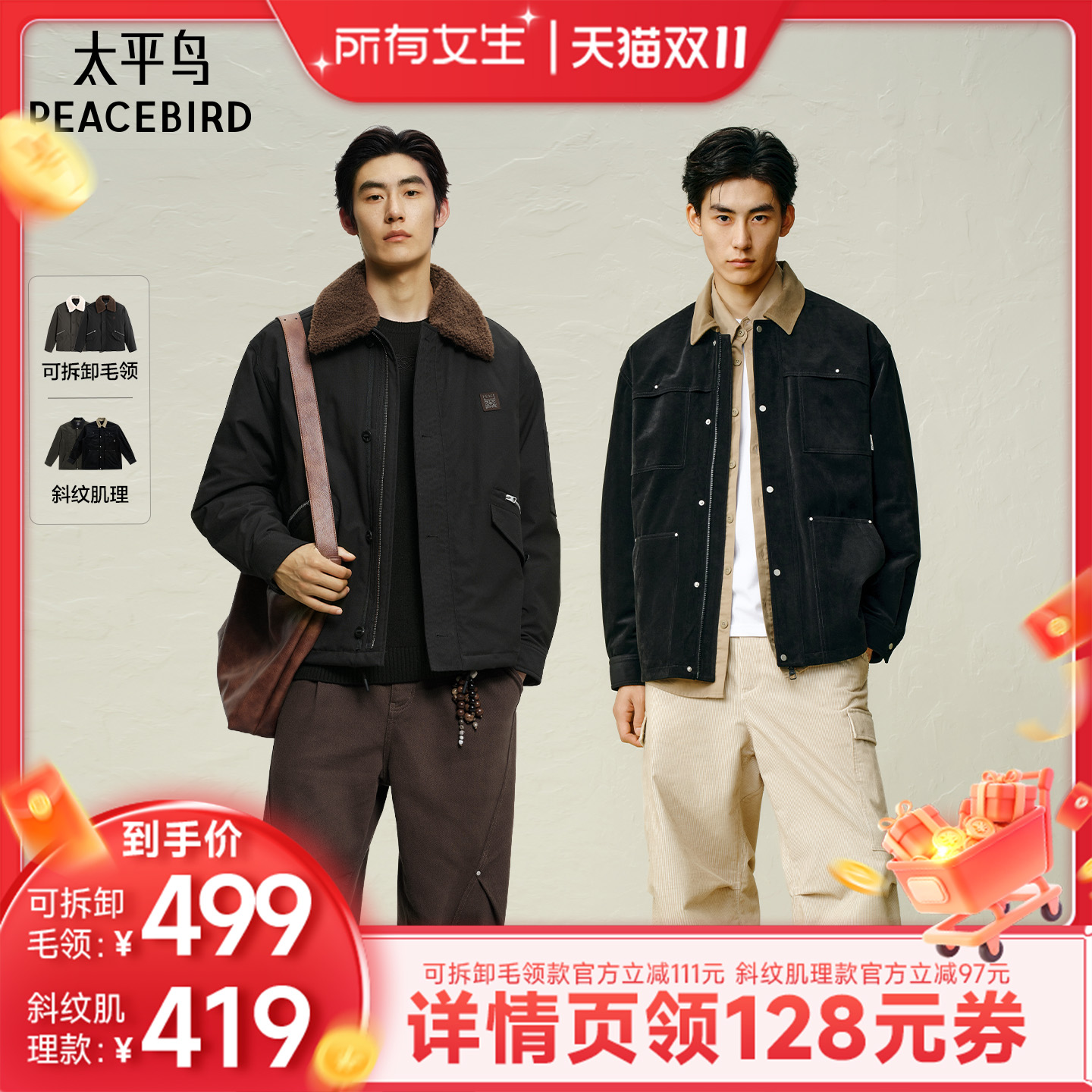 太平鸟男装夹克25秋冬新款复古巴恩风工装羽绒服质感通勤宽松外套