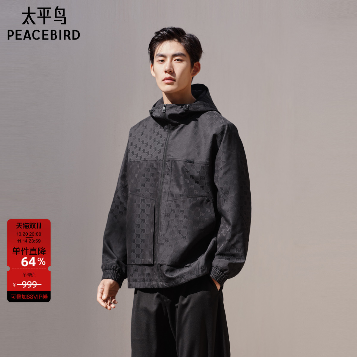 太平鸟男装暗纹提花连帽夹克2025秋新款户外休闲钓鱼服时尚茄克