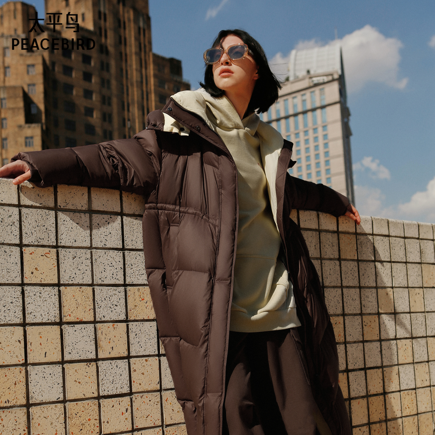 【张婧仪同款】太平鸟冬款连帽长款羽绒服撞色面包服A3ACE4423
