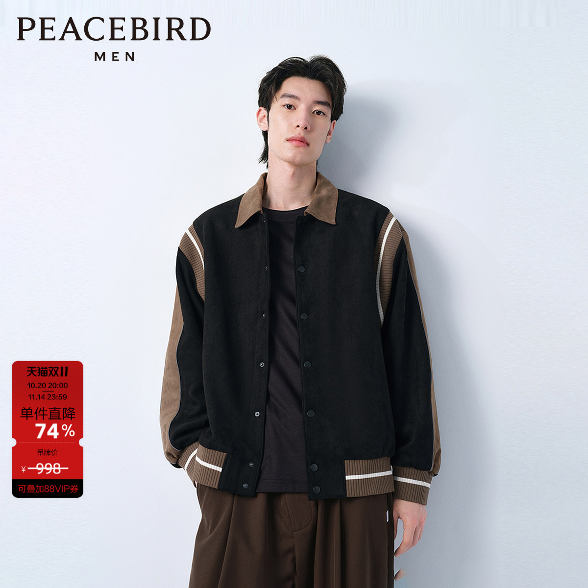 太平鸟男装立领通勤行政夹克2025秋冬拼接宽松茄克男士休闲外套