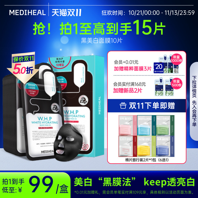 【新品组合】美迪惠尔经典水库面膜10片WHP美白黑面膜10片补水