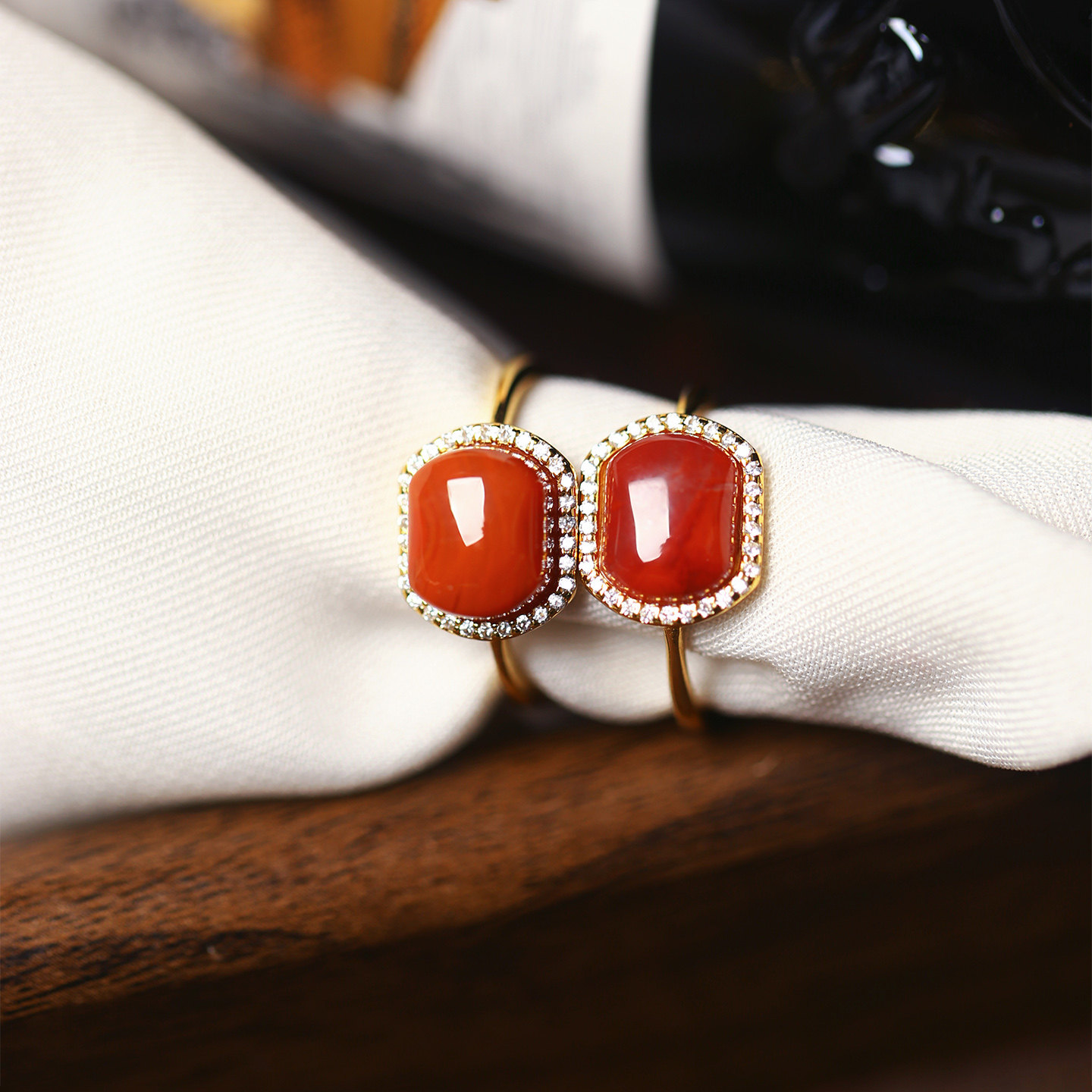 天然川料南红玛瑙满色满肉柿子红925纯银镶嵌戒指 女南红指环饰品
