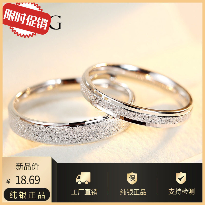 纯银戒指999足银对戒男女情侣一对日韩简约活口光面学生素戒刻字