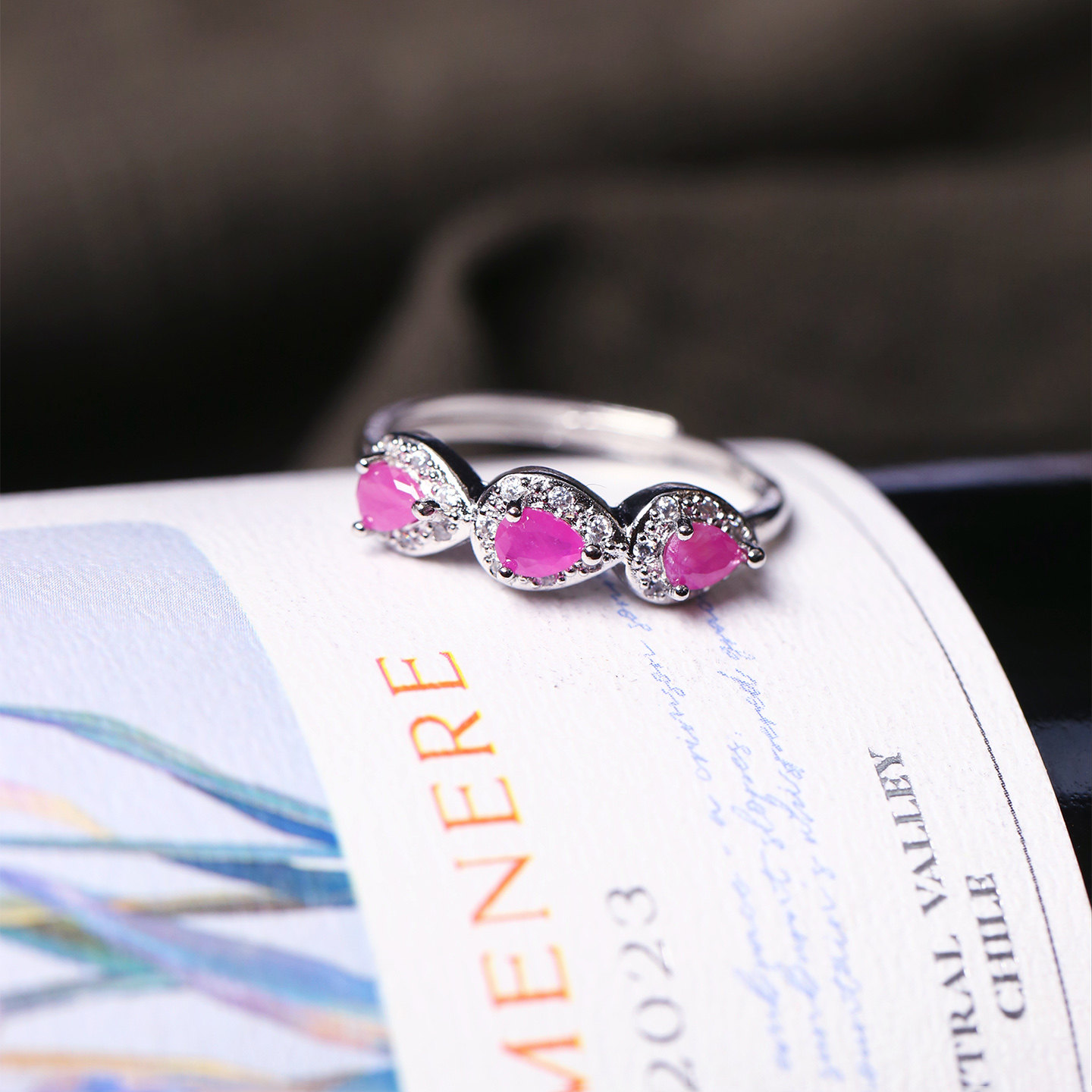 精品彩宝 天然老烧红宝石戒指活口镶嵌款戒指 女款宝石指环饰品