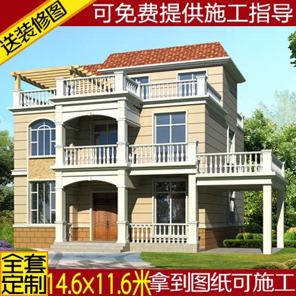 新农村自建房别墅定制设计建筑施工图纸一二三层半房屋设计效果图