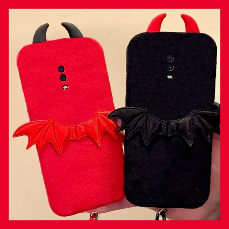 恶魔翅膀适用oppor17手机壳r15x秋冬r11splus毛绒r11s立体r9耳朵r9plus带r7s挂绳r17pro卡通oppo情侣0pp0毛毛