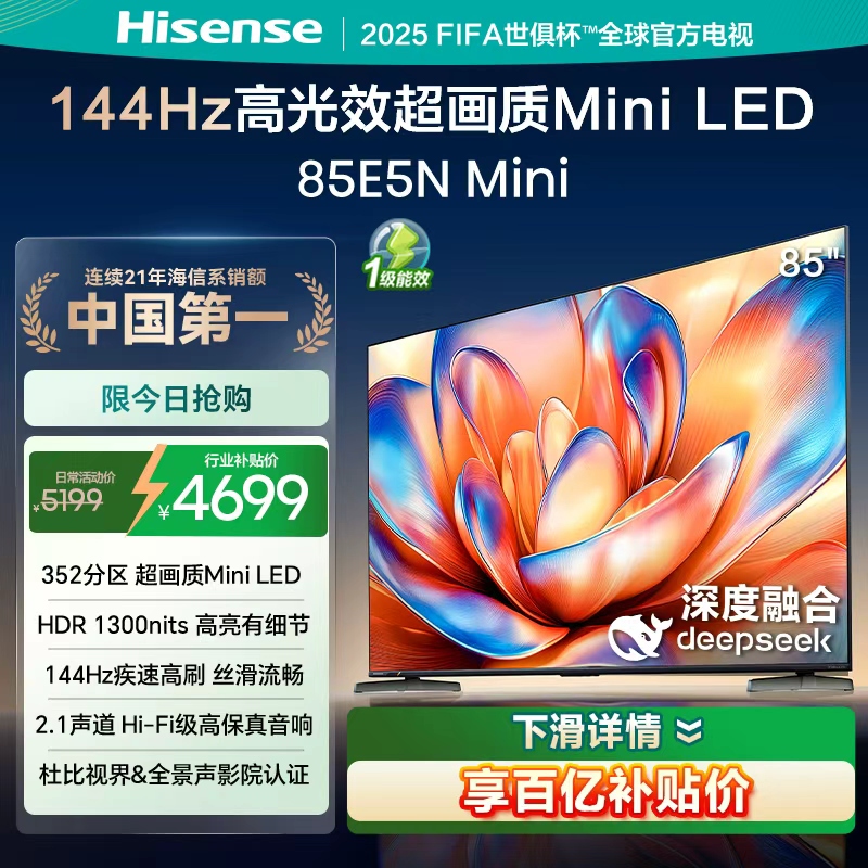 海信电视85E5N Mini 85英寸Mini LED电视机液晶家电补贴换新119