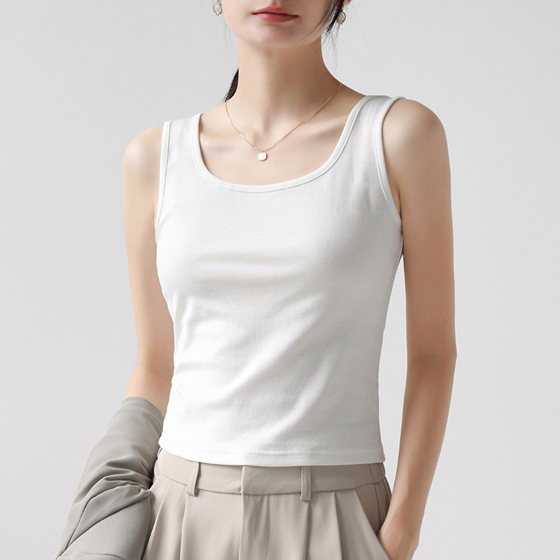 白色吊带背心女修身显瘦短款内搭打底衫秋冬外穿带胸垫运动上衣潮