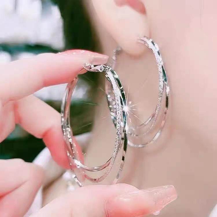 三生三世圆圈圈耳环新款潮气质百搭耳扣耳圈轻奢镶钻银针法式耳饰