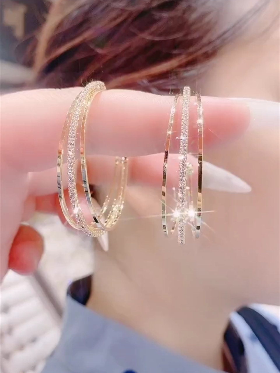 轻奢高级感三生三世镶钻耳环多层锆石时尚耳坠个性小众显脸瘦耳饰