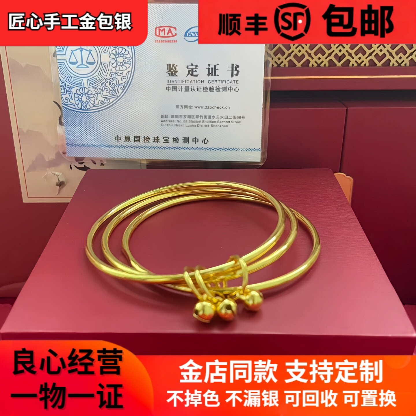 正品纯银三生三世蝴蝶风铃9999足银实心银手镯手环闭口送女友礼物