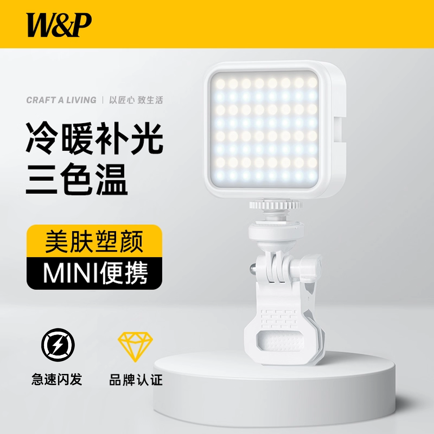 【W&P】手机补光灯便携式户外拍摄专用打光灯拍照自拍外拍摄影灯单反相机口袋灯rbg全彩豆腐灯直播美颜灯