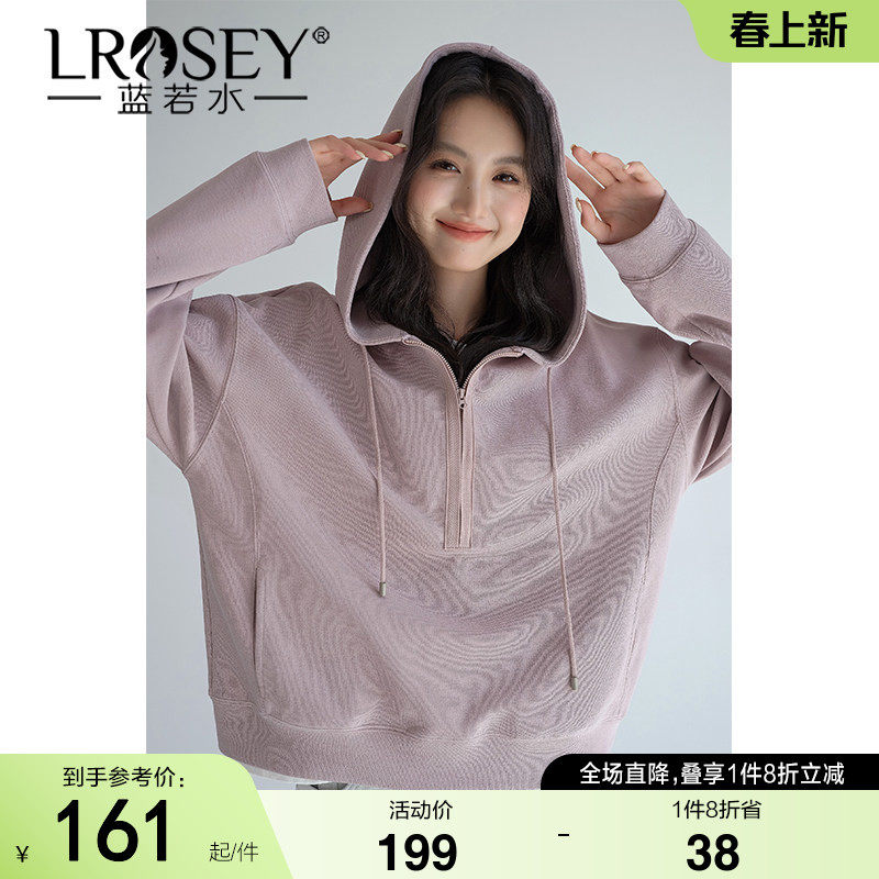 蓝若水大码女装美式半拉链连帽套头卫衣胖mm2026春装新款慵懒上衣