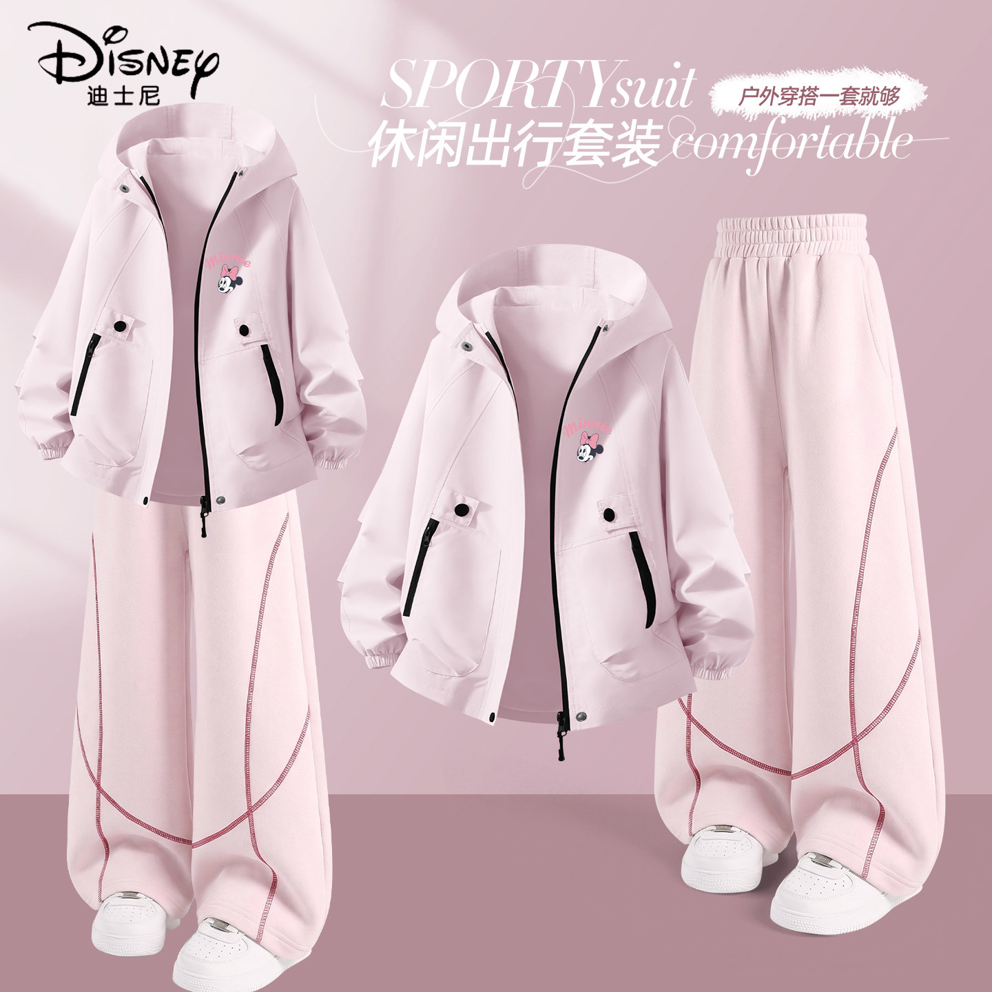 迪士尼女童春装套装2026新款春秋女大童户外运动衣服儿童防水外套