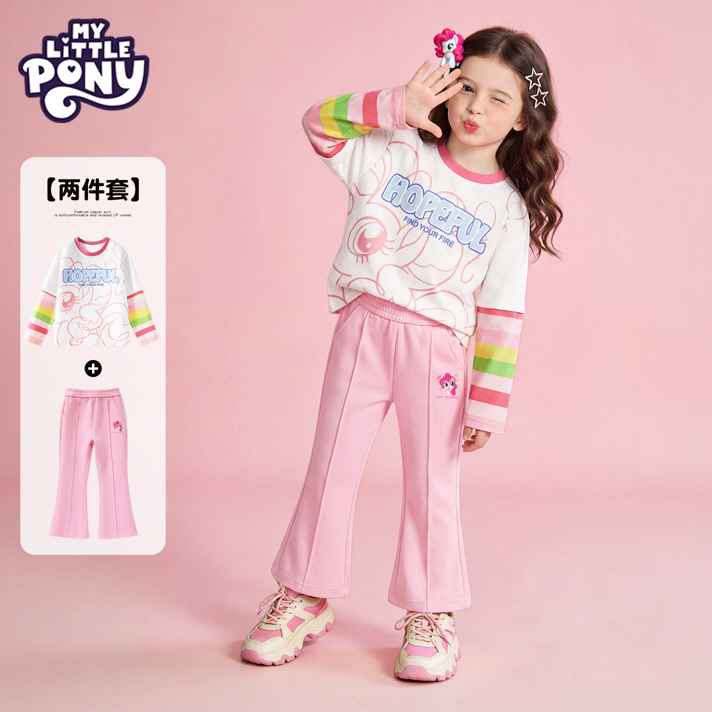 小马宝莉童装女童春装套装长袖2026新款洋气时髦喇叭裤春秋季衣服