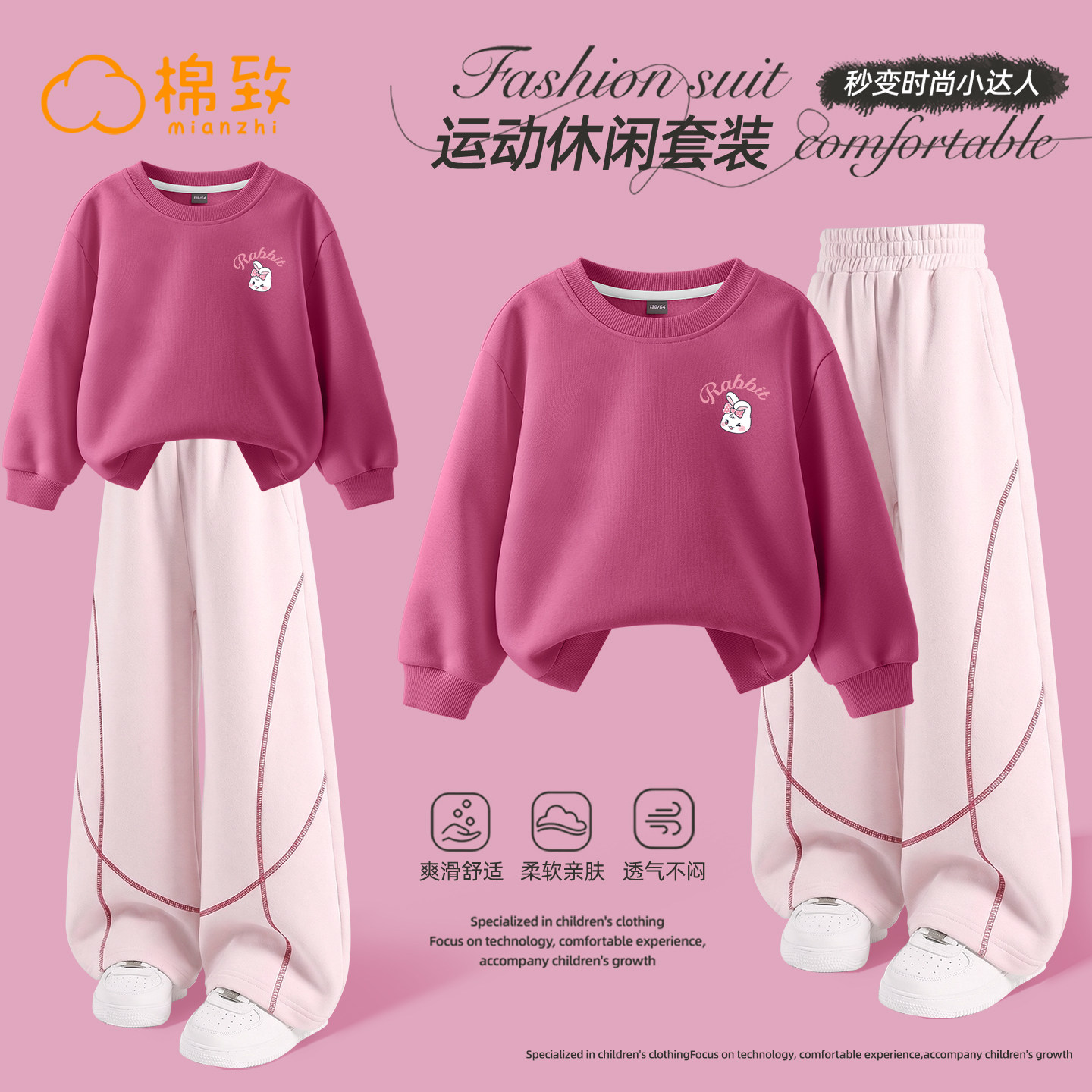 棉致女童春装套装2026新款春秋时髦女大童卫衣春季儿童衣服两件套