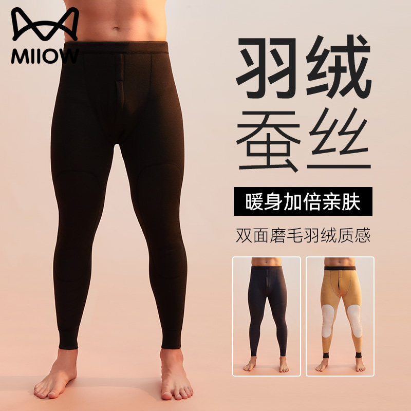 猫人男士保暖裤2026冬季新款加绒加厚100%羽绒护膝防寒打底秋裤男