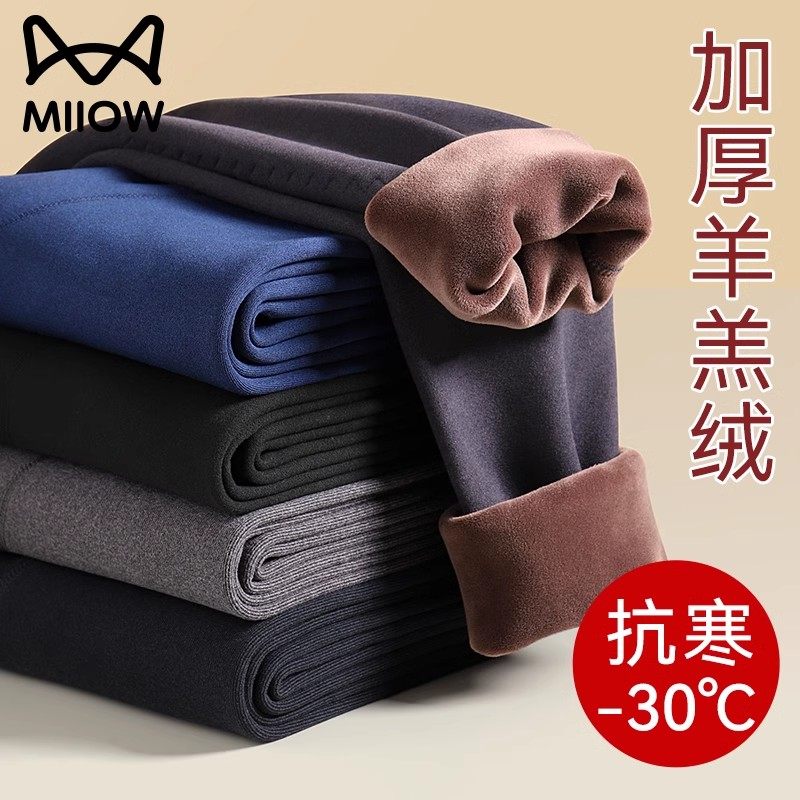 猫人秋裤男款2025新款男士保暖裤冬季加绒加厚大码羊毛护膝打底裤