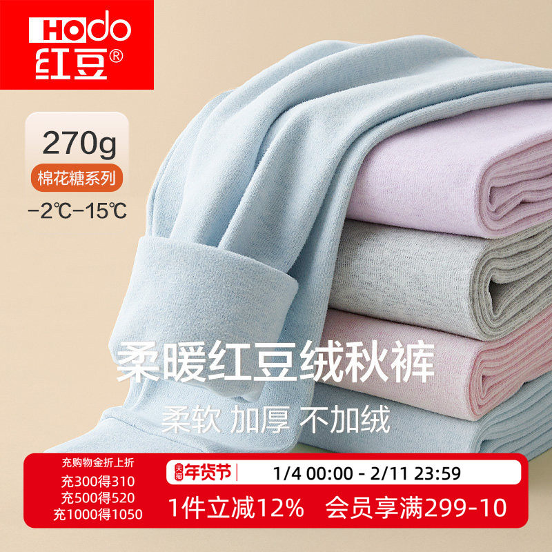 红豆居家儿童纯棉秋裤男童女孩大童保暖裤线裤全棉棉毛裤内穿睡裤