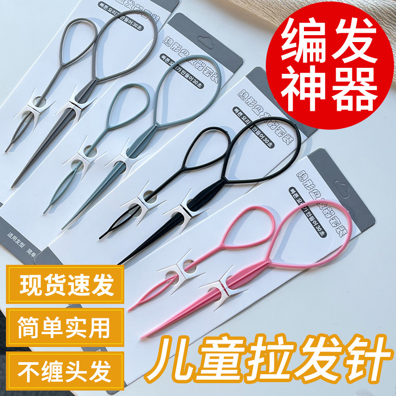 儿童盘发拉发针女小号软穿发器小孩掏发器编发神器懒人扎头发工具