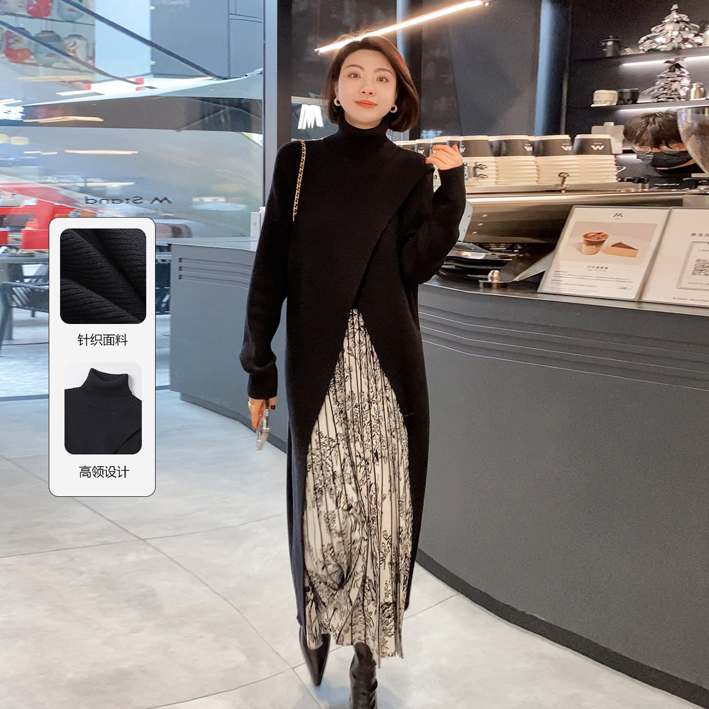 - 中长款针织连衣裙