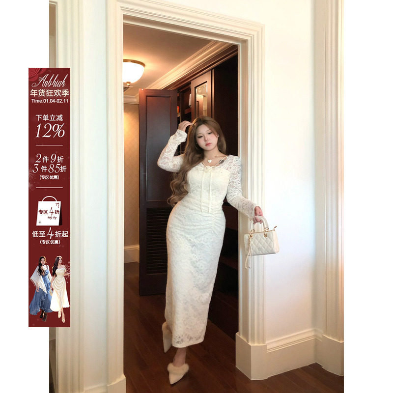 - 蕾丝包臀连衣裙