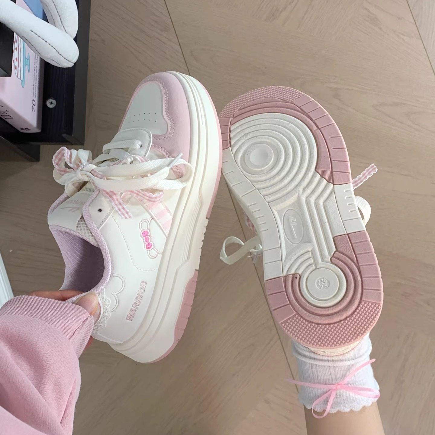 华耐断码清仓厚底小白鞋女款2025春季新百搭款珍珠丝带休闲板鞋子