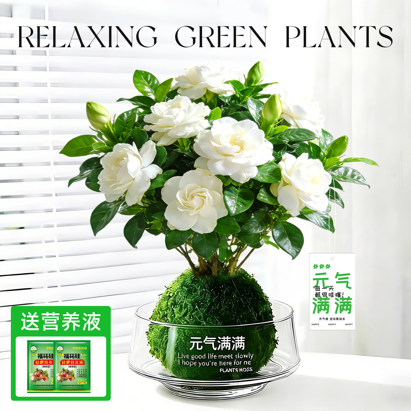 栀子花盆栽绿植物四季办公室内开花卉桌面小摆件好养适合懒人的花