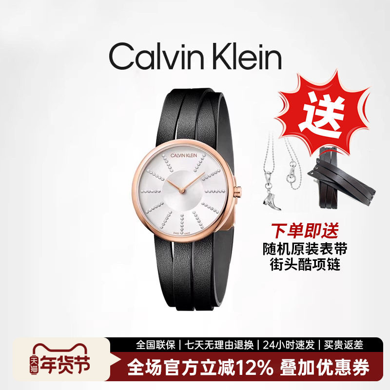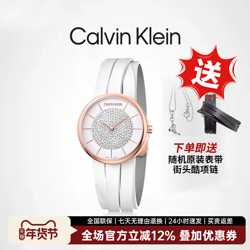 Calvin Klein ck手表女士轻奢瑞士石英官方正品罗马鞋满天星腕表