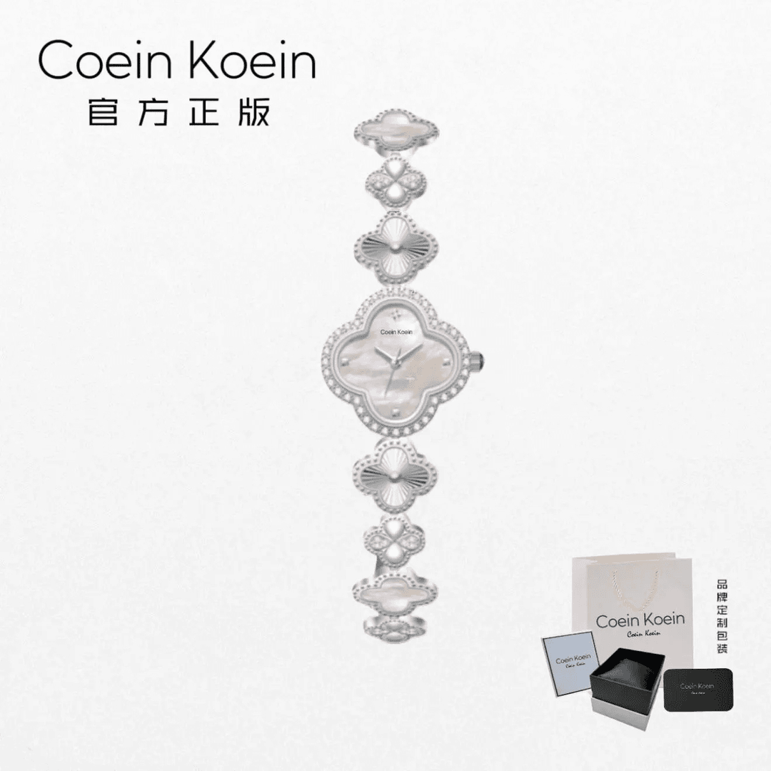 Coein Koein【官方正版CK2999四叶草奢华镶钻粉盘贝母女士手腕表