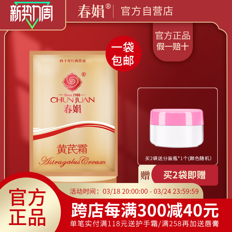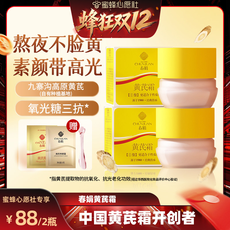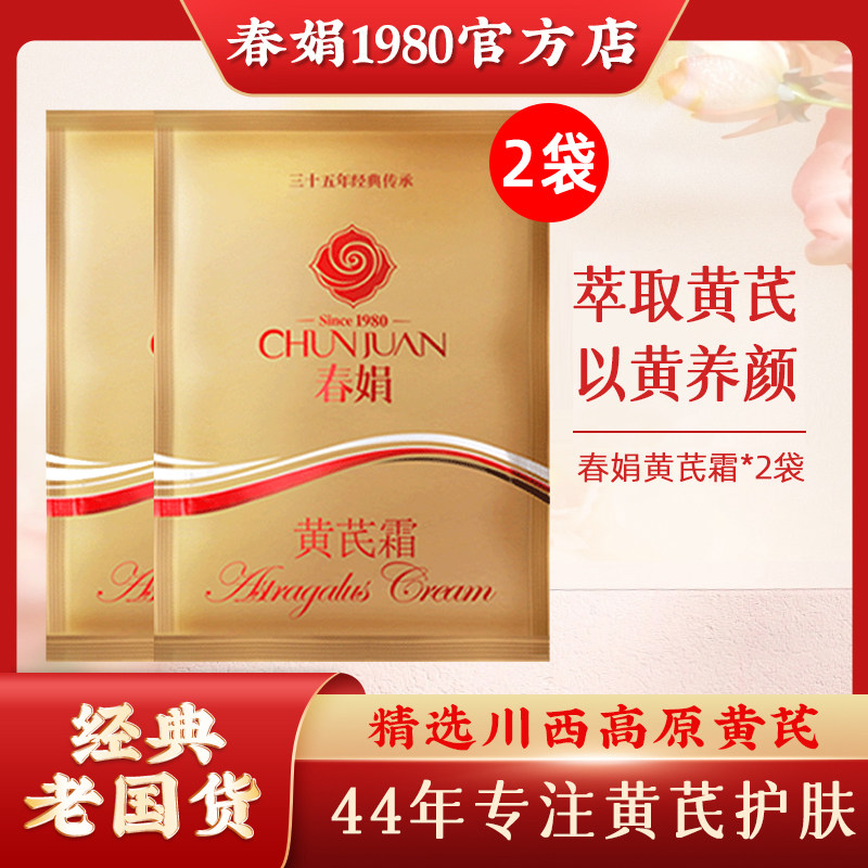 春娟黄芪霜30g*2袋保湿补水滋润淡黄面霜护肤提亮官方旗舰店正品