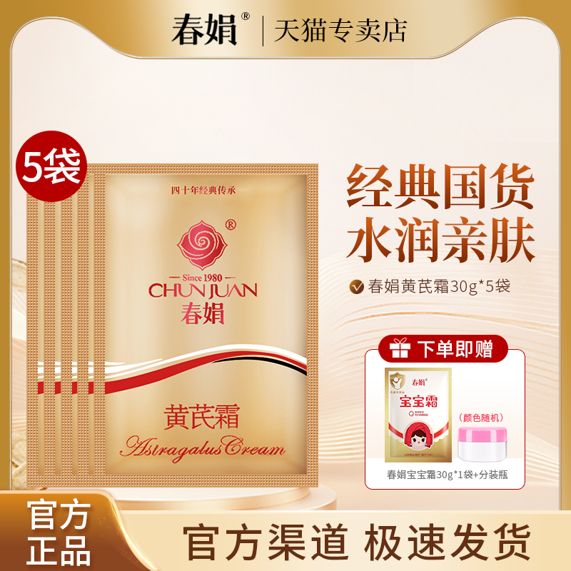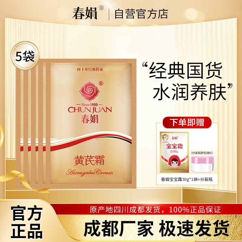 春娟黄芪霜5袋装补水保湿滋润水油黄氏面成都国货官方旗舰店正品