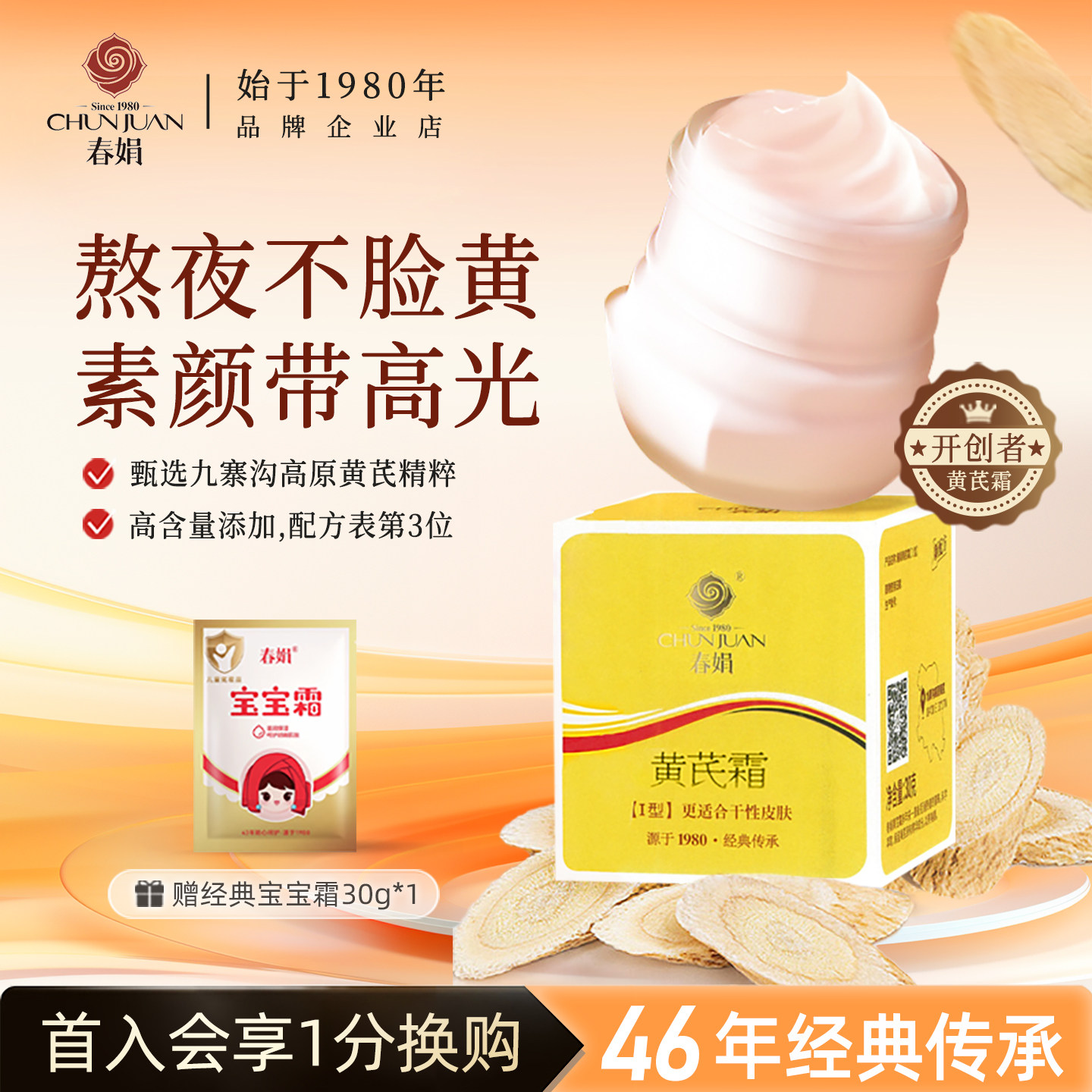 【品牌官方】春娟黄芪霜30g提亮肤色改善暗沉男女士保湿护肤面霜