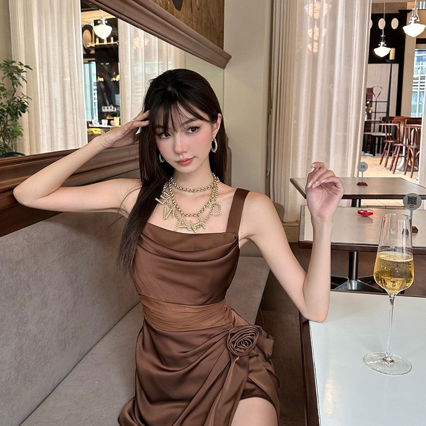 - 真丝连衣裙大牌长裙