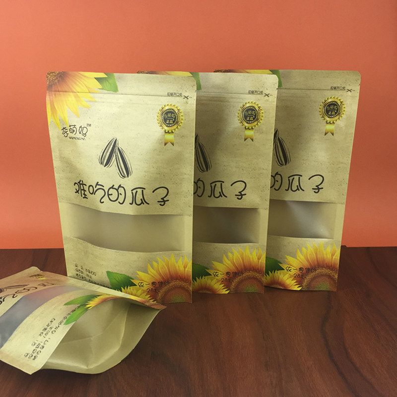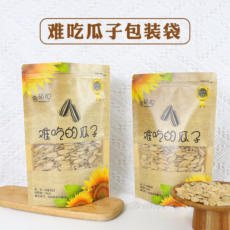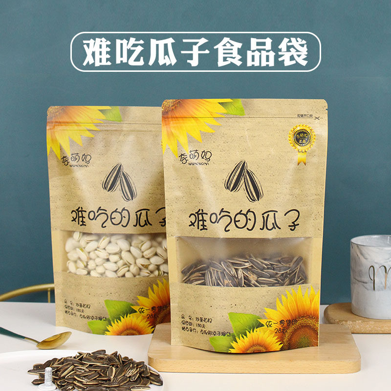 耐萌妈难吃的瓜子袋方窗牛皮纸袋自封袋定做l印刷500克包装袋自立