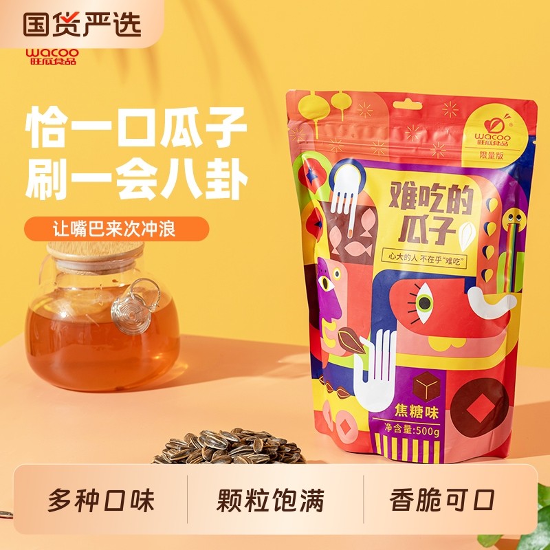 旺瓜食品难吃的瓜子焦糖味核桃葵花籽坚果炒货办公室网红休闲零食