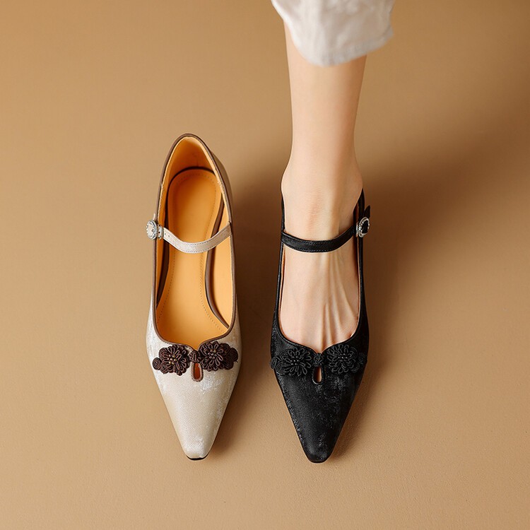 富贵雨 新年单品 中跟名媛轻奢风带跟细跟尖头方扣水钻高跟女单鞋