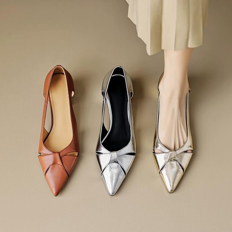 欧洲站真皮女鞋2025秋新款欧货细跟胎牛皮浅口单鞋尖头中跟高跟鞋