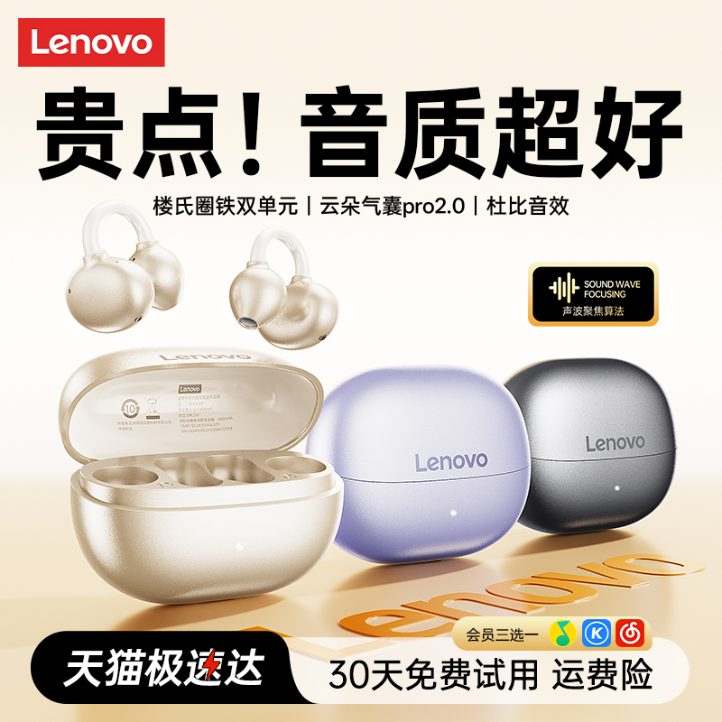 联想耳夹式蓝牙耳机无线运动跑步挂耳骨传导开放不入耳2025新款型