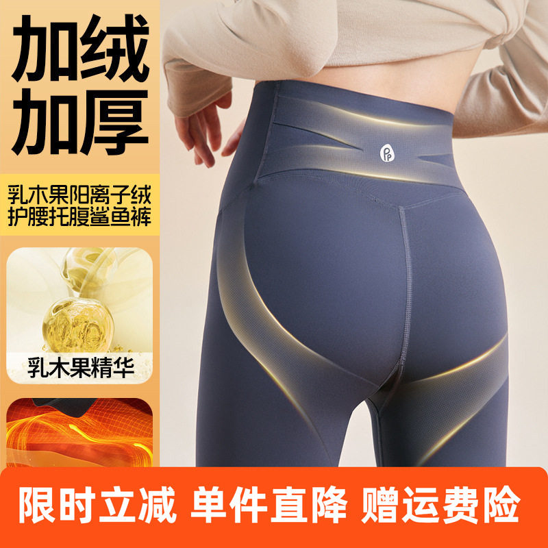 冬季保暖孕妇鲨鱼裤大码外穿高弹力加绒打底裤加厚显瘦托腹瑜伽裤