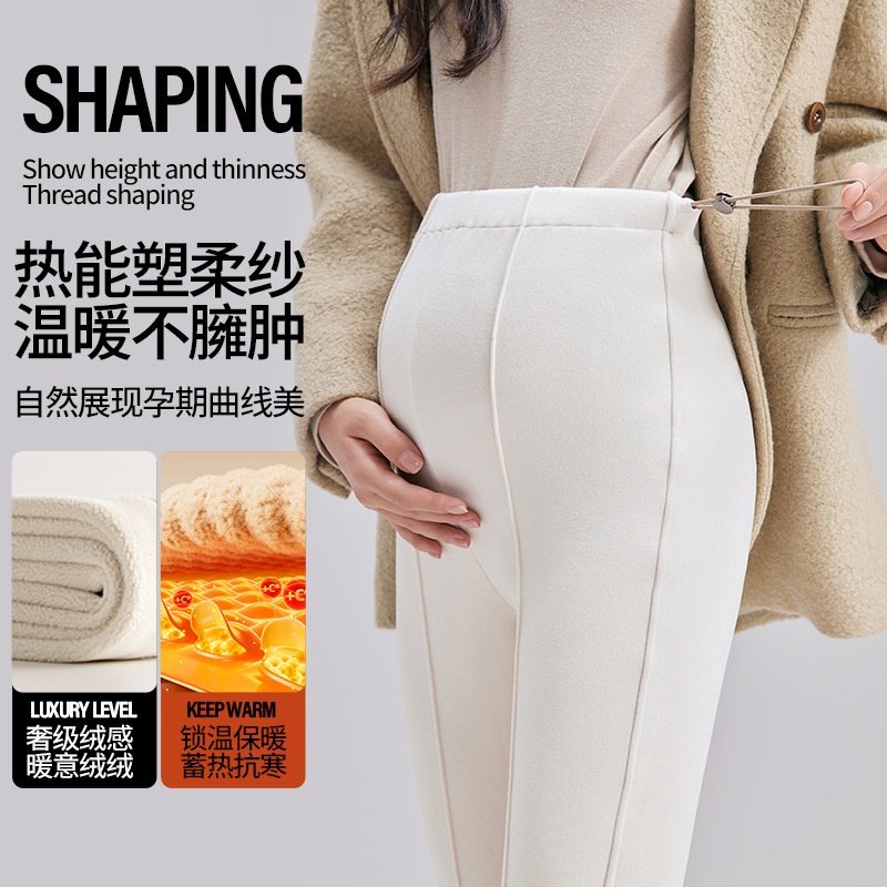 孕妇打底裤子秋冬季外穿2025新款加绒加厚弹力显瘦紧身托腹裤九分