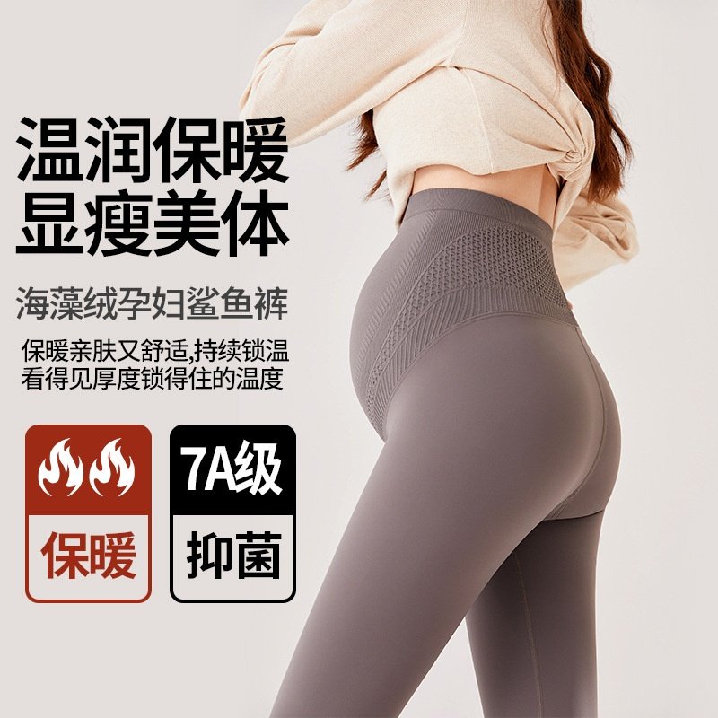 孕妇鲨鱼裤子秋冬季加绒加厚外穿冬装灰色托腹弹力瑜伽打底裤春秋