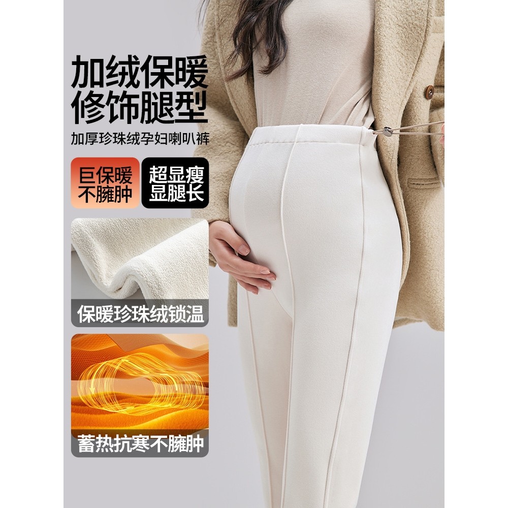 罗丽丝孕妇托腹微喇裤高腰弹力加绒加厚打底裤冬季新款保暖亲肤瑜